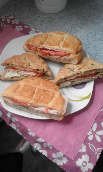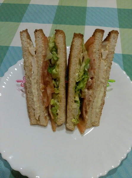 Sandwich de pollo a la plancha, lechuga, rodajas de tomate y mayonesa por Pili Hurtado.