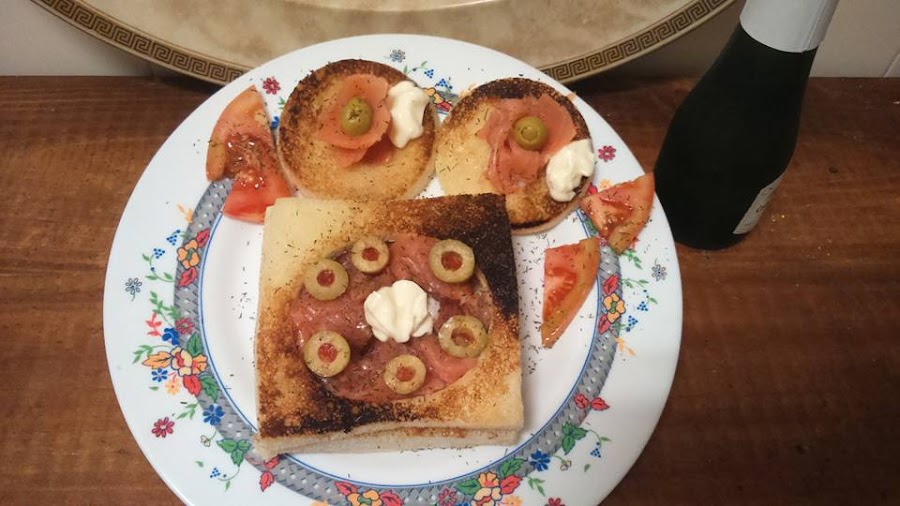Sandwich de salmón, tomate y queso crema por Valle Alcantarilla Álvarez.