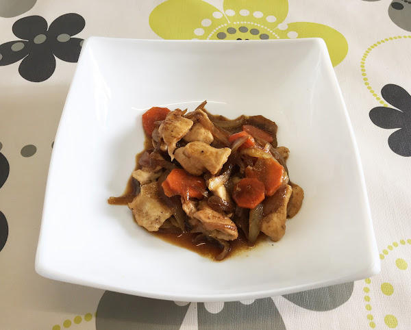 Pollo encebollado al café