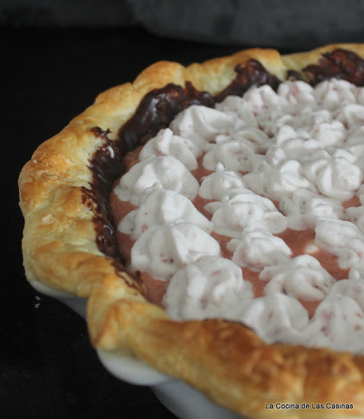 Soy muy fan de las frambuesas, las utilizo tanto para dulces: recuerda mi Pavlova aqui, o estos preciosos pastelitos con mousse de pera, aquí o en este milhojas con crema de piña, por cierto una de las recetas más visitadas del blog, aquí o acompañando este riquísimo semifrío de chocolate, aquí o con recetas saladas, ya te contaré. Me gusta su color, su sabor dulce y un poco ácido y su textura. Aprovechando que tenía una plancha de hojaldre a punto de caducar y unas frambuesas en la nevera, se me ocurrió preparar esta tarta.