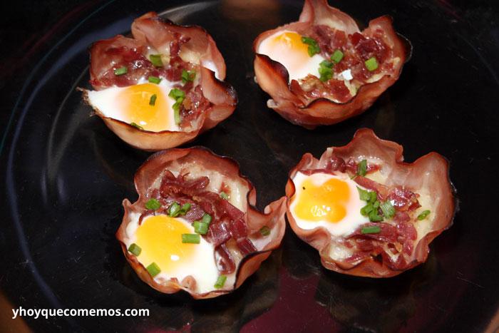 VER RECETA COMPLETA AQUÍ 3. Canastitas de jamón y huevo de codorniz