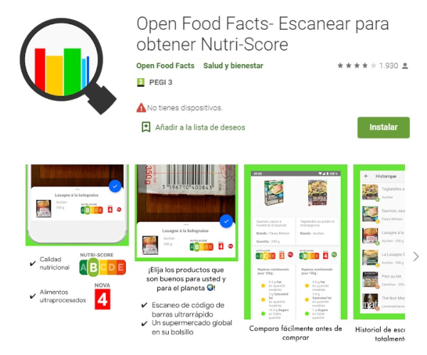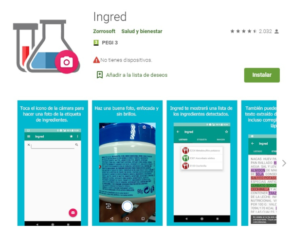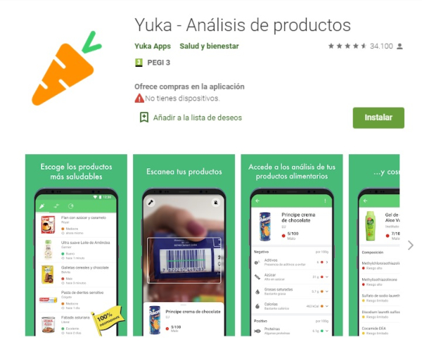 Esta aplicación, al igual que la primera, vale para alimentos y productos cosméticos y también es muy fácil de usar y de entender sus resultados.