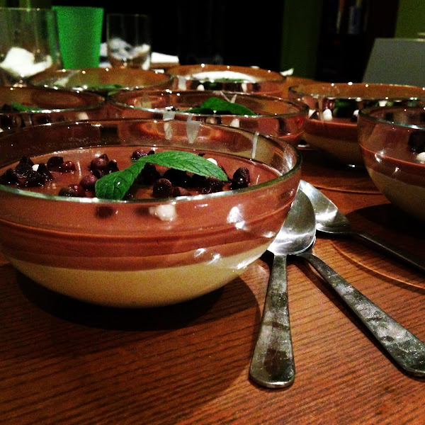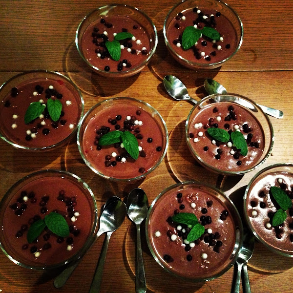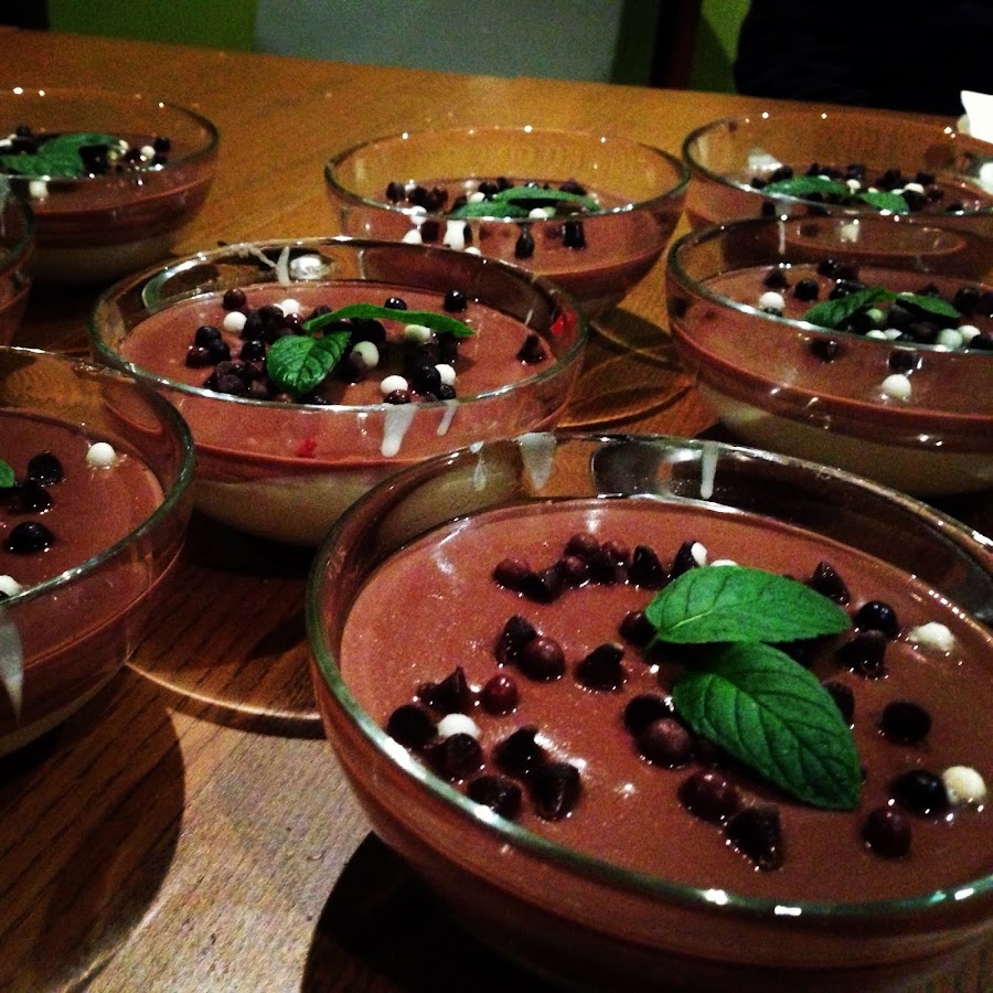 Cuando ya están las copas bien frías podemos servir. Para decorar y dar color a esta copa llena de sabores y texturas diferentes de chocolate, podemos poner unas hojas de menta que además le darán un aroma fresco y delicioso.!!!
