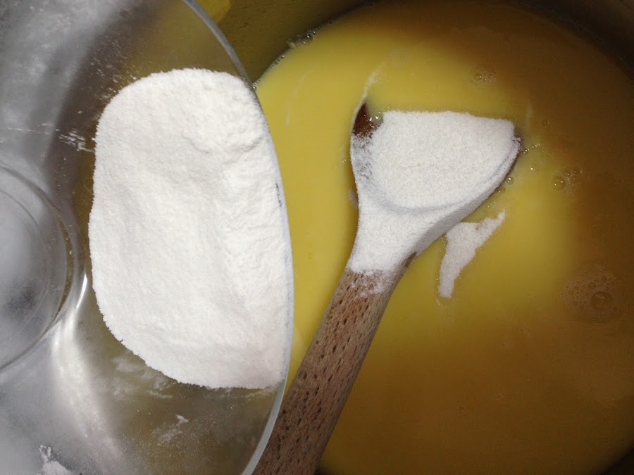 Una vez que se ha fundido el chocolate será el momento de añadirle la mezclad de azúcar y quajada y seguimos removiendo hasta que empiece a hervir. (Es importante no dejar de remover).