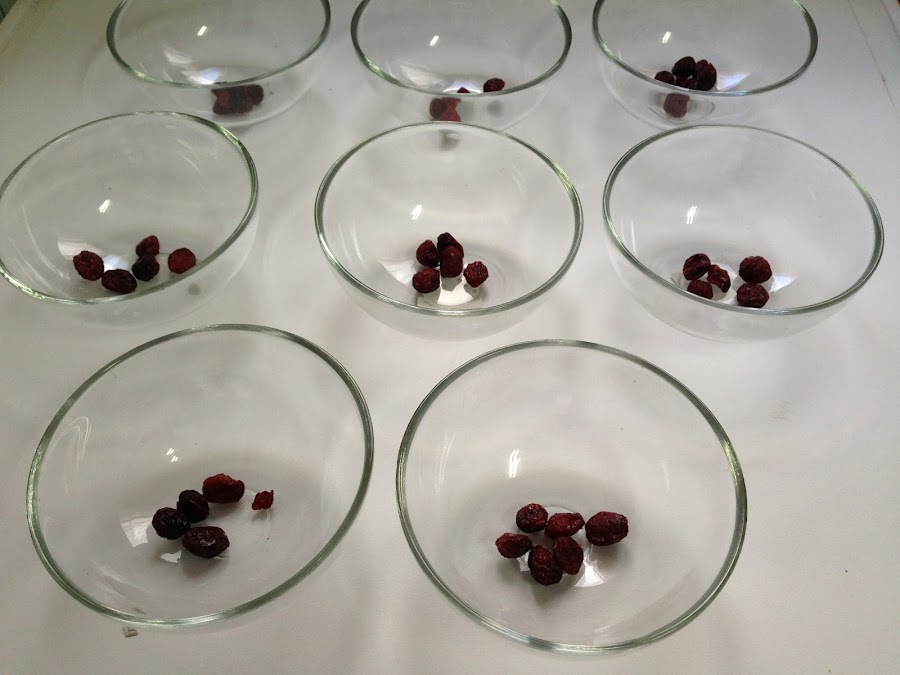 Segundo paso: pondremos algunos arándanos en el fondo de cada copa.