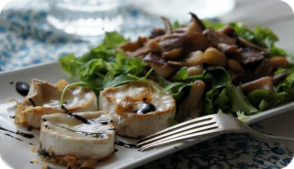 Con este fresquete no apetecen mucho las ensaladas, lo se! pero esta es templada... así que, aceptamos barco? jejejeje yo soy muy de queso de cabra y ya si lo mezclamos con setas puedo morir dos veces o las que hagan falta. Para cenar un día así que no tengamos mucho tiempo me parece perfecta, no?