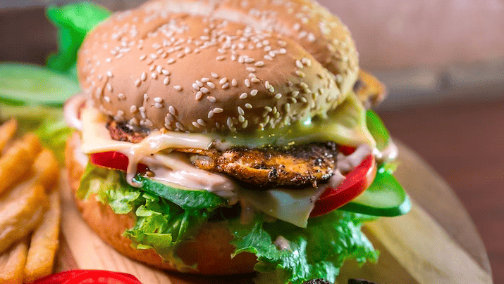 INGREDIENTES: Pan de hamburguesa (al gusto), Carne de kebab, Lechuga, Tomate, Queso cheddar, Huevo frito, Mayonesa y Salsa Kimchi.