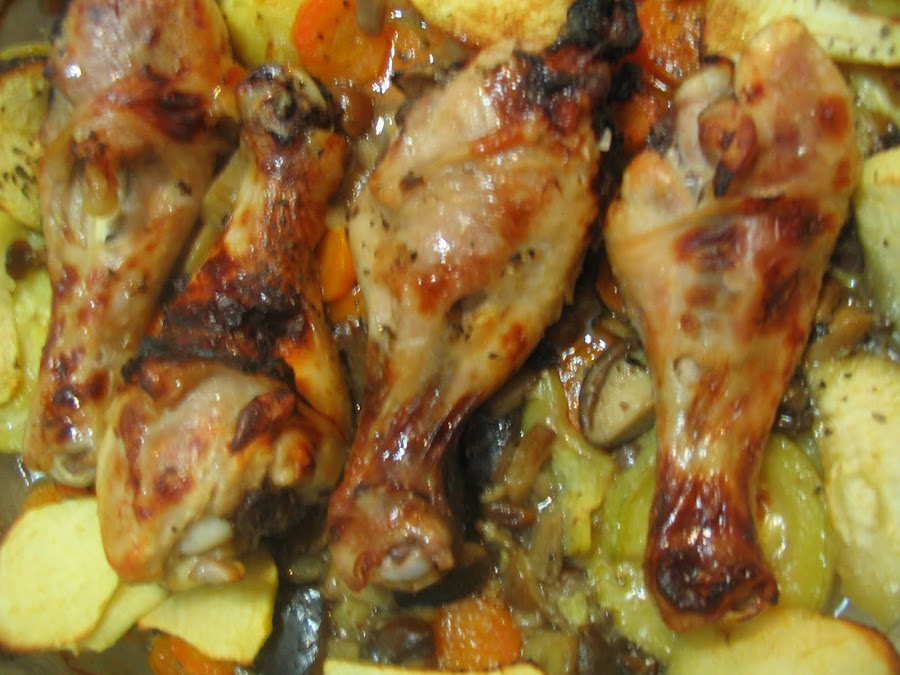 Del blog de Rosa Borrás, que por cierto me gusta mucho, he cogido este rico Pollo con manzana al horno