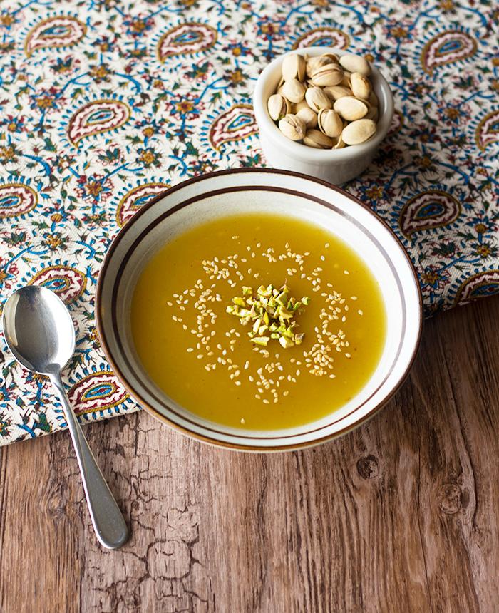 La idea es servirlo caliente o a temperatura ambiente, y espolvorear semillas de sésamo y pistacho para resaltar el sabor.