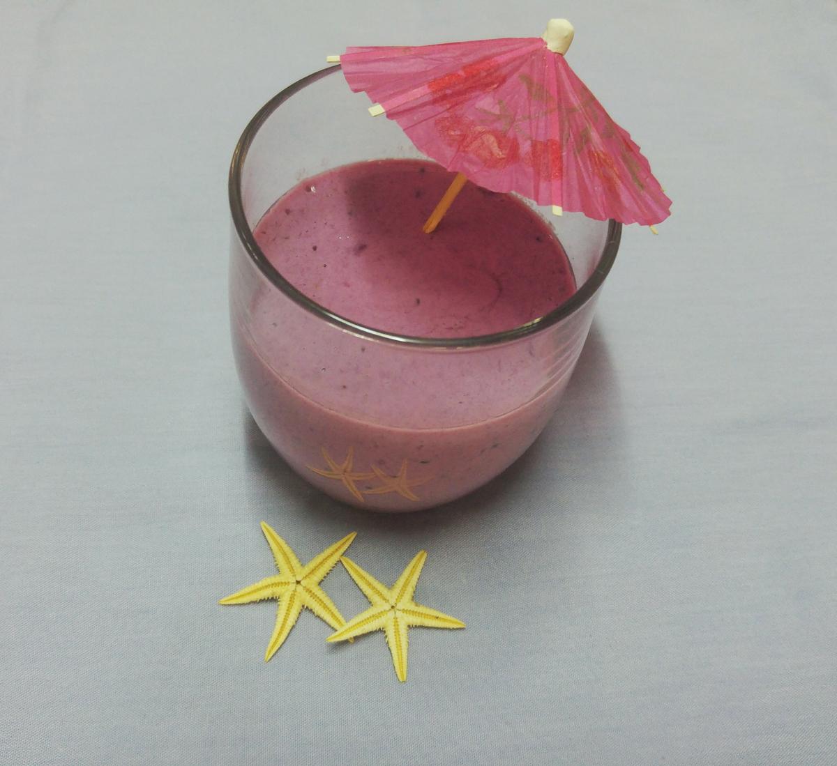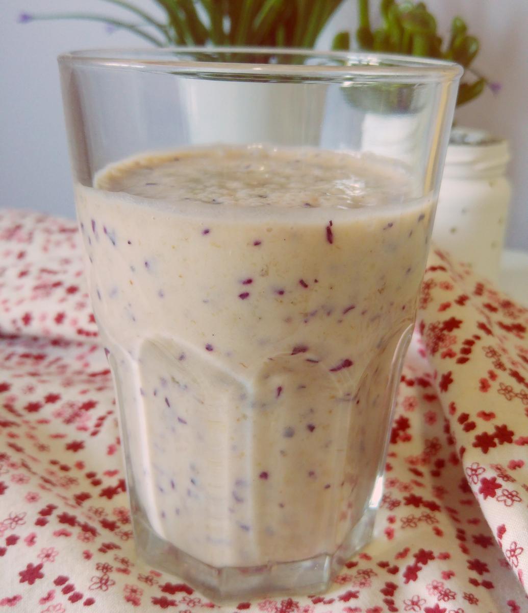 Para una mejor textura y que quede más fresquito, recomiendo que el plátano y arándanos estén previamente congelados. Pero eso va a gustos. Simplemente se baten todos los ingredientes y ya tenemos nuestro smoothie perfecto para beber.