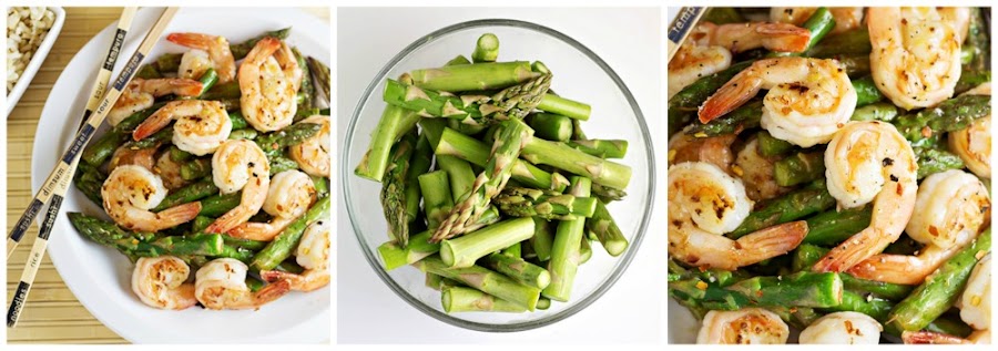 Verter la salsa de limón en la sartén junto con los espárragos y los camarones durante 1 minuto más o menos.