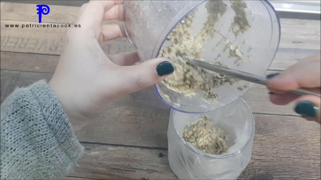 3. Pasa el resultado a una bolsa alimenticia y así podrás emplatar de manera más fácil (también vale con manga pastelera). Si no vas a emplatar en el momento puedes guardar la mezcla en el frigorífico hasta el momento de servir.