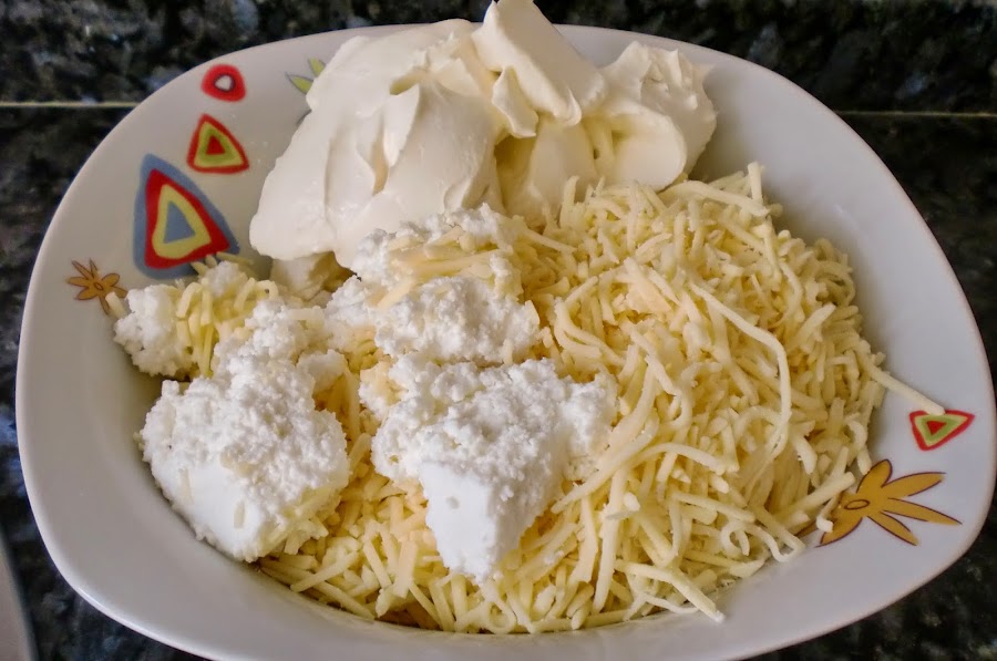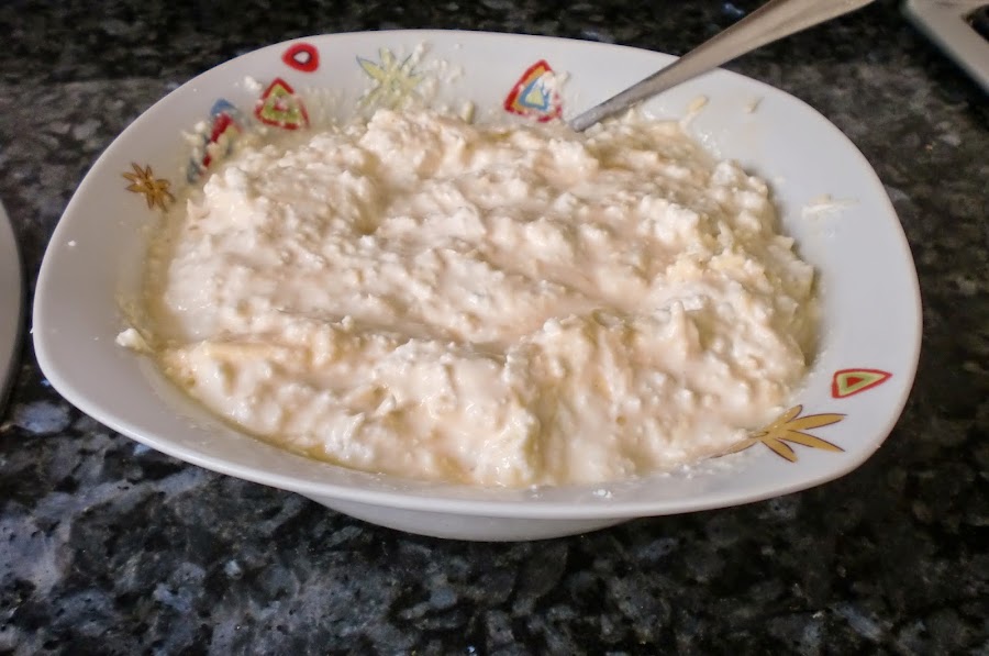 Añadimos los huevos a la mezcla de quesos y removemos muy bien.