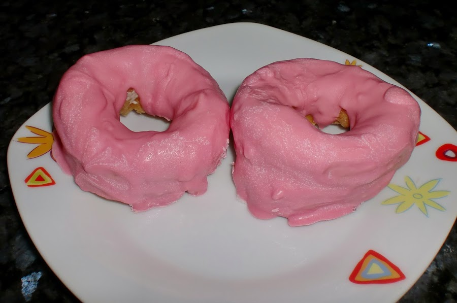 Fundimos en el microondas los candy melts o el chocolate. Vertemos sobre el cronut.