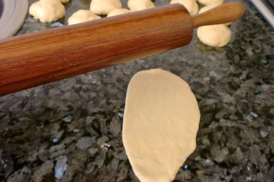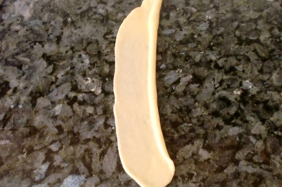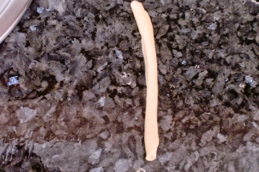 Aplanamos, sobre una superficie engrasada, la bolita con un rodillo dandole forma alargada.