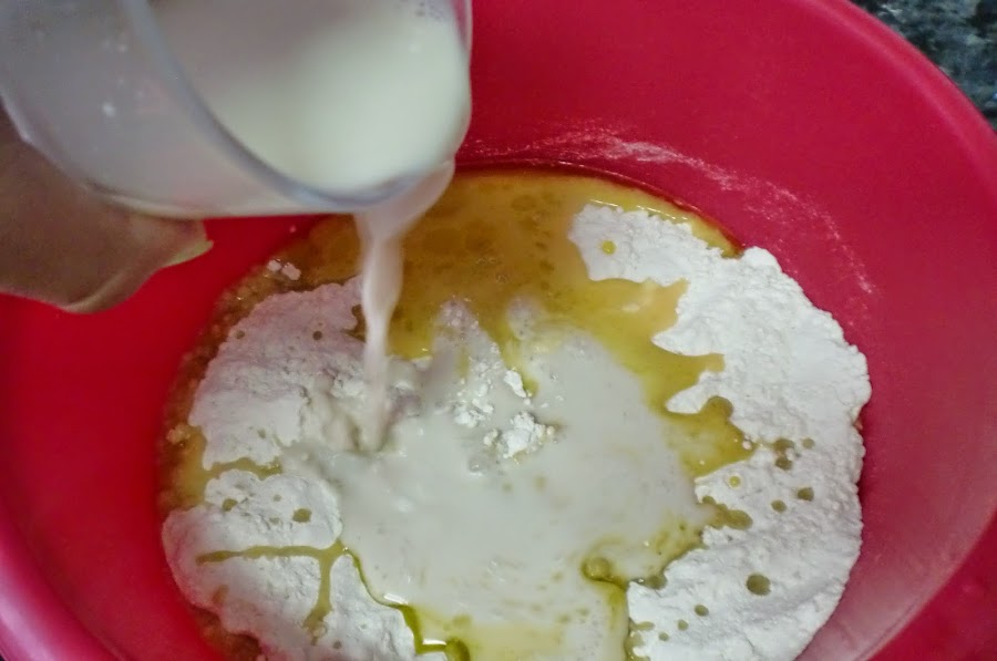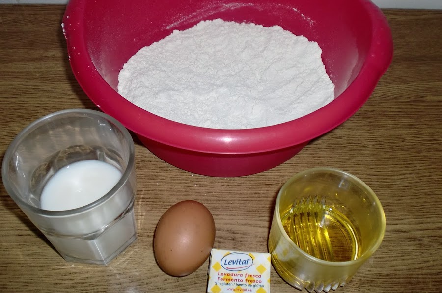 Deshacemos la levadura en el agua con la leche templada.