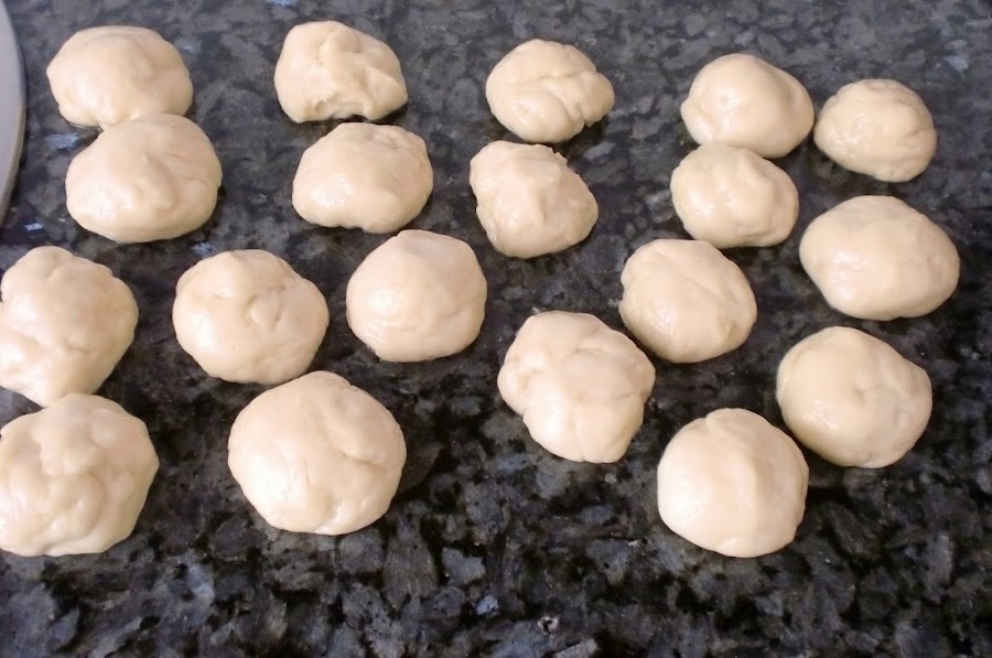 Dividimos la masa en bolitas de unos 30g y las dejamos reposar durante 5min. mas.