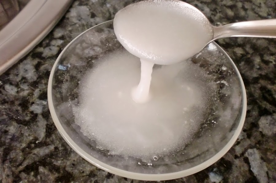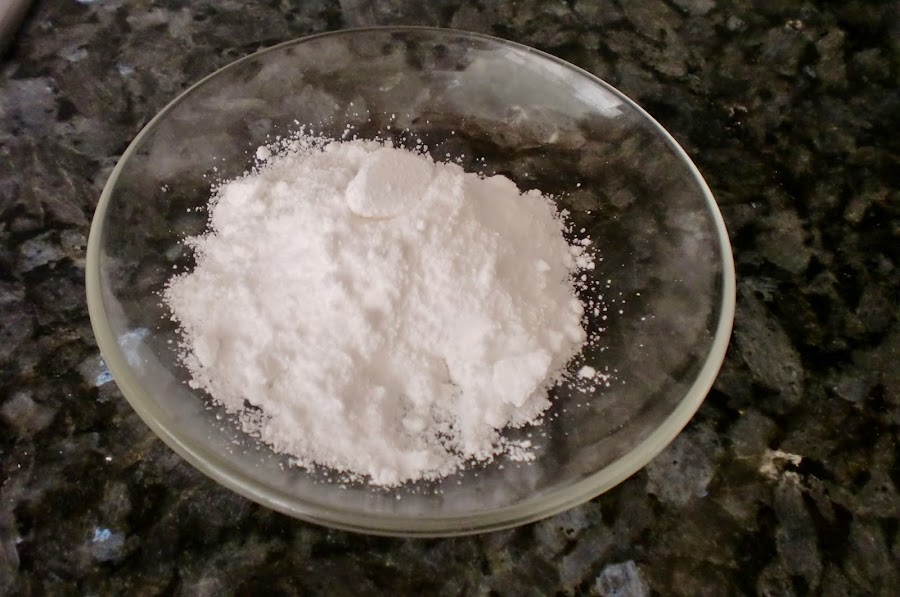 Azucar glas y agua fria. (yo lo hago a ojo pero unas 8 cucharaditas de azucar y 3 de agua)