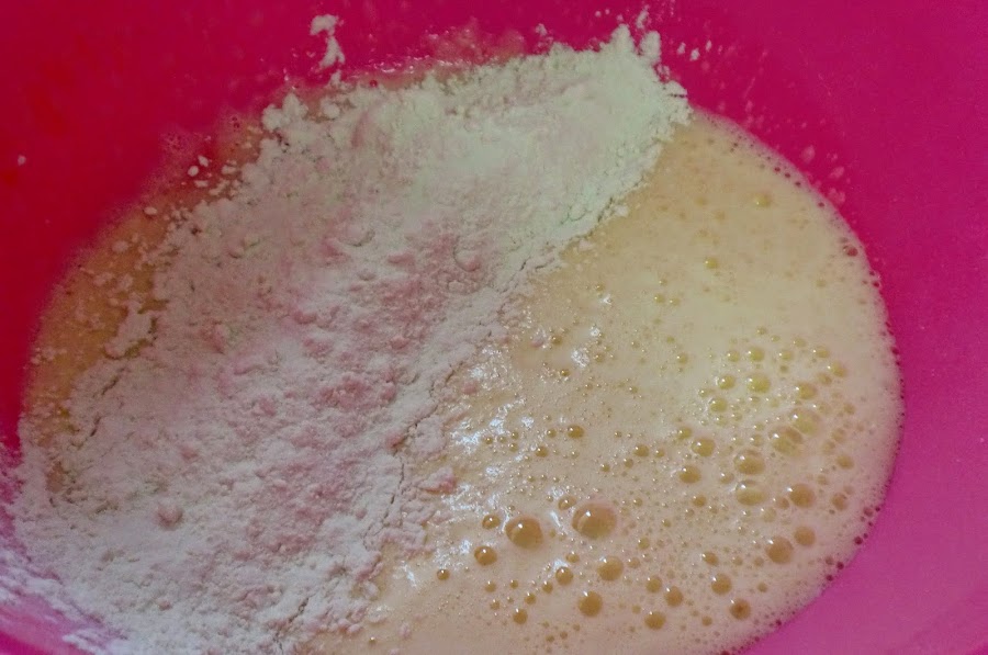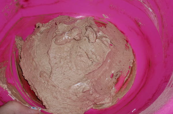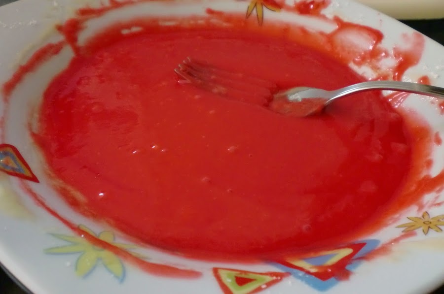 Cuando este bien integrado añadimos la harina y mezclamos bien. Es en este momento cuando se le añade el colorante.