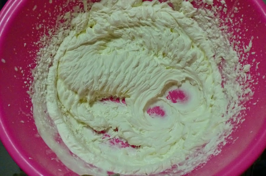 Es muy sencilla. Montamos la nata (crema de leche) con unas varillas electricas.