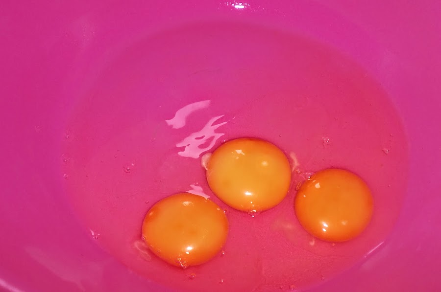 Ahora pasaremos a preparar la masa del bizcocho plancha. Para ello, batiremos los huevos con el azucar hasta blanquearlos.