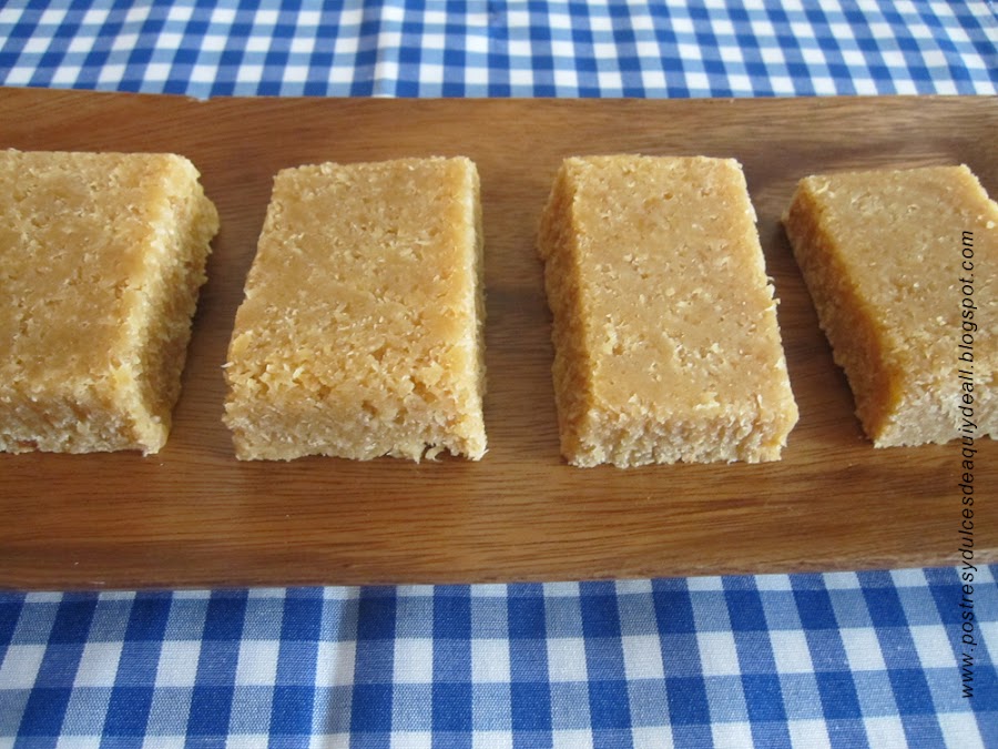 Una vez hecho esto que es lo realmente mas laborioso lo rallas por la parte mas gruesa del rallo,lo llevas en una olla (yo te recomiendo un caldero porque su calor es más uniforme),con el azúcar y el agua observa bien por que aquí la única finalidad es unir bien el coco con el azúcar es decir amelcochar, te repito es muy importante por que si no te queda en ese punto tus tabletas no van a endurecer sino que se van desboronar .es muy importante revolver hasta que despeguen bien amelcochadas del caldero u olla, entonces estará lista la bajas y rápidamente porque se enfrían pronto la colocas en una bandeja preferiblemente plana esparces bien respetando un grosor adecuado o dependiendo de tu gusto pero las tabletas son cuadradas y de un grosor normal, si las haces muy delgadas serán fácil de quebrarse y si las haces muy gruesas no lucirán muy bien. El momento de cortarlas es justo cuando están tibiecitas y cuidar de voltearlas para que la parte de abajo se seque también.