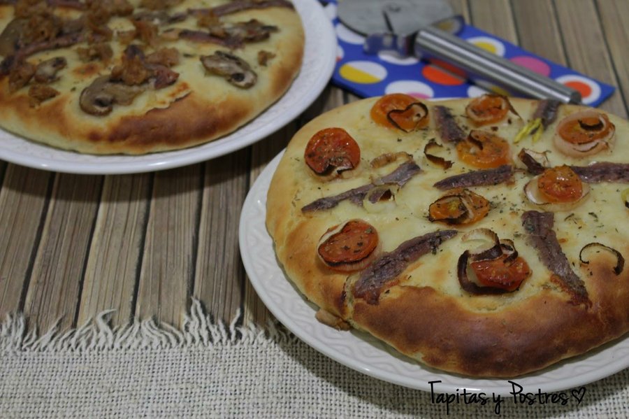 El blog Tapitas y Postres nos trae esta receta que explica en dos versiones una en thermomix y la tradicional que consiste en hacer una masa colocando los siguiente ingredientes en un bol; harina, agua, levadura, patatas, aceite entre otros ingredientes. Preparamos la masa, dejamos reposar y luego amasamos, cortamos en dos partes y luego extendemos. Rellenamos con anchoas, tomatitos cherry, champiñones, orégano entre otros ingredientes. Horneamos y servimos calentita. Puedes ver de forma detallada proporciones y resto de ingredientes haciendo clic a continuación: