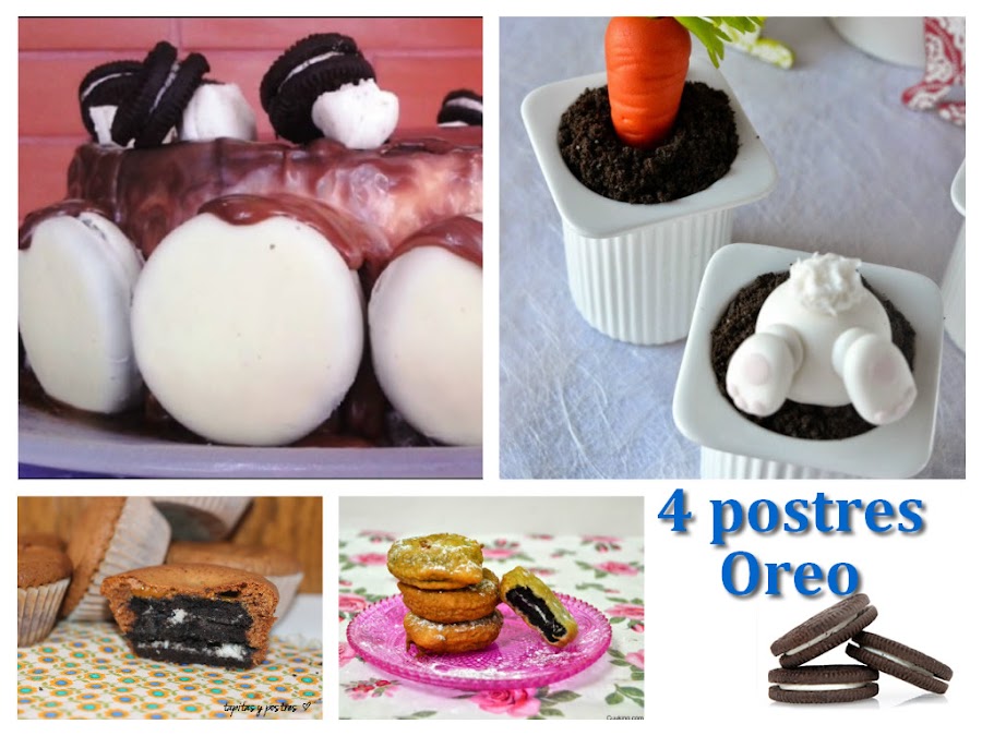 Cuando veo este tipo de postres, pienso que todavía no todo esta inventado. Esta idea se le ocurrió a Juanan, he visto en su blog cosas muy curiosas. Pero esta ahora nada como estas galletas. Me dejo dos recetas para hacer este colaborativo y elegí estas. La otra también esta igual de original. Par hacer estos buñuelos fritos tenemos que tener a mano: harina, galletas oreo, leche, levadura en polvo, aroma de vainilla, huevos y aceite para freír. Hacemos la masa con la harina, los huevos y la leche. Rebozamos los oreos y las freimos en abundante aceite caliente. Escurrimos sobre papel de cocina y listos para comer. Para ver todos los detalles: (Aquí)