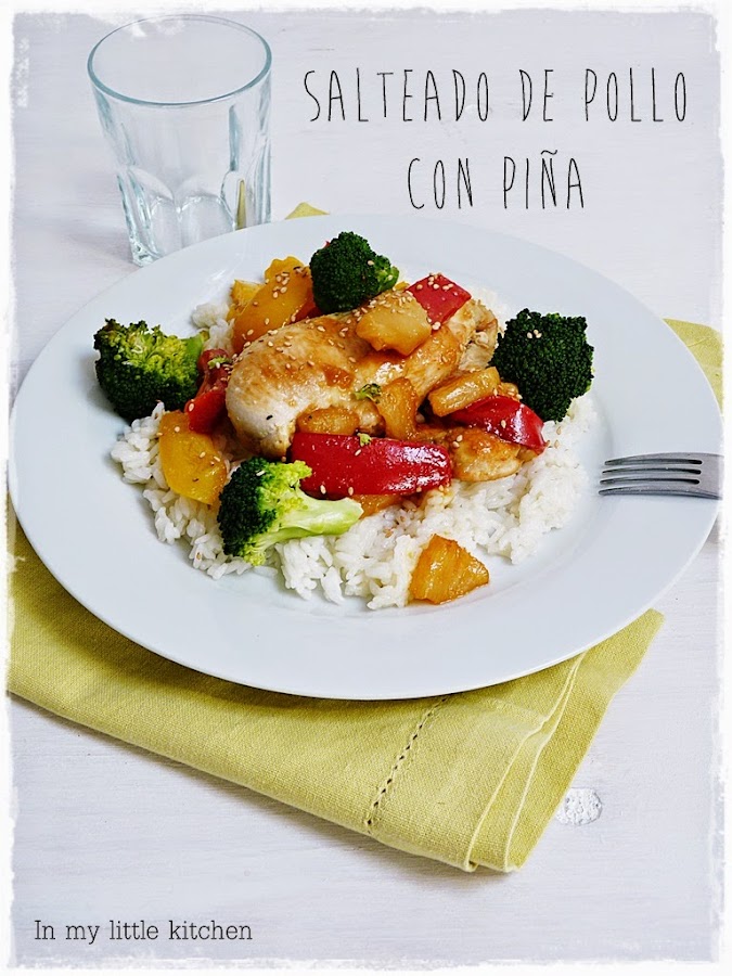 Si lo que tienes en casa es Pollo, puedes hacer este Salteado de In my little kitchen, que como bien dice María , te apetece comerlo solo de verlo en la foto