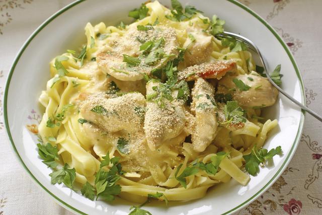Sal, pimienta y condimentos de su preferencia.- Pasta con salsa Alfredo: