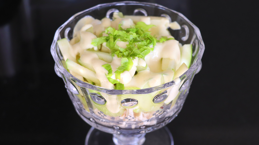 2. Cortar manzana, pechuga y apio fino. No muy grueso.