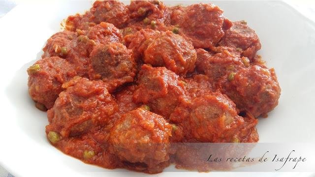 Isabel, nos invita a probar sus albóndigas con salsa de tomate. Una receta super fácil que esta para comer con pan y no parar. Si queremos hacer esta receta es necesario: carne mixta, guisantes, cebolla, aceite de oliva, cebolla, tomate natural triturado. Hacemos la albóndigas, las friamos en aceite caliente. Por últimos añadimos el tomate y los guisantes y cocinamos unos minutos más. Para ver el resto de los ingredientes y todos los detalles: (Aquí)