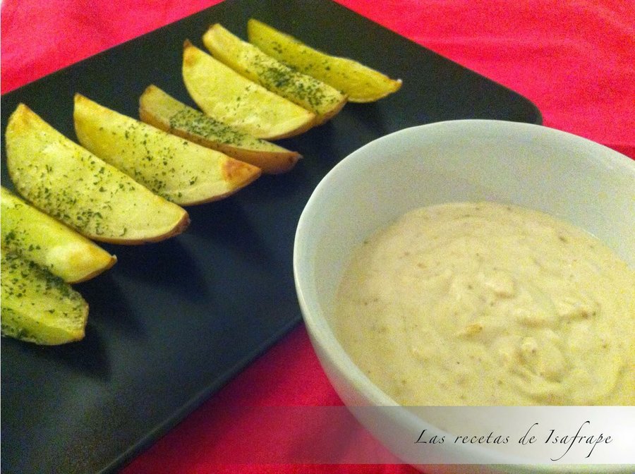Desde el blog Las recetas de Isafrape, Patatas gajo con salsa de ajos asados (receta aquí). Se asan unas patatas y se cortan en gajos. Luego, se prepara una salsa batiendo ajos asados, yogur y sal. Así de sencillo y así de rico.