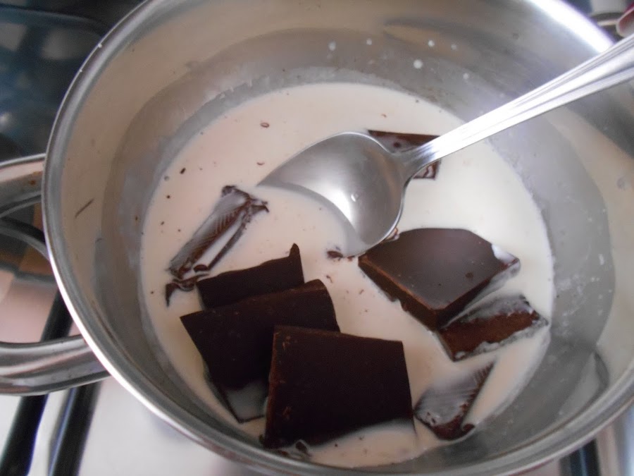 Preparamos la cobertura. Calentamos la nata (crema de leche).
