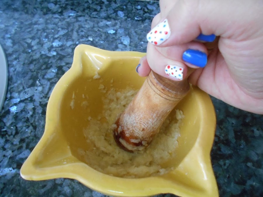 Machacamos los ajos.