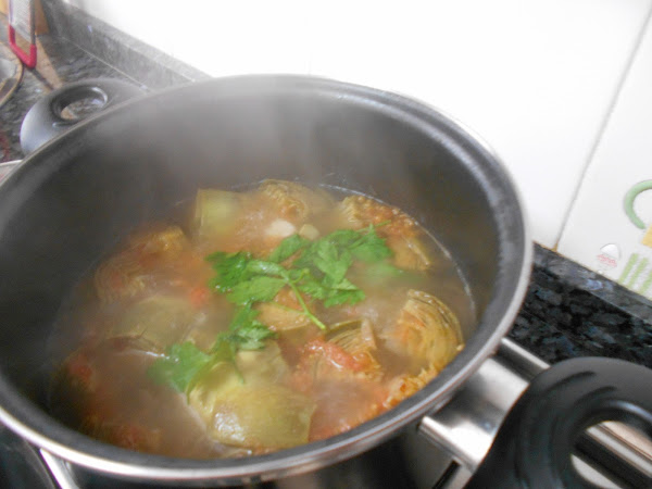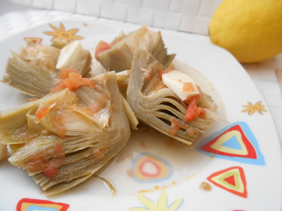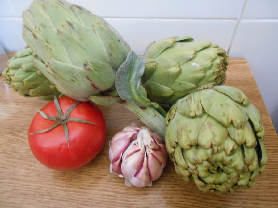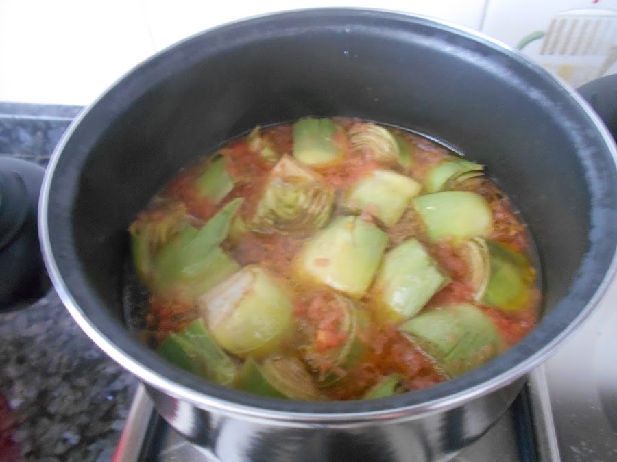 Asi de sencillo, alcachofas guisadas con tomate. Una receta que preparaba mi abuela Dolores.