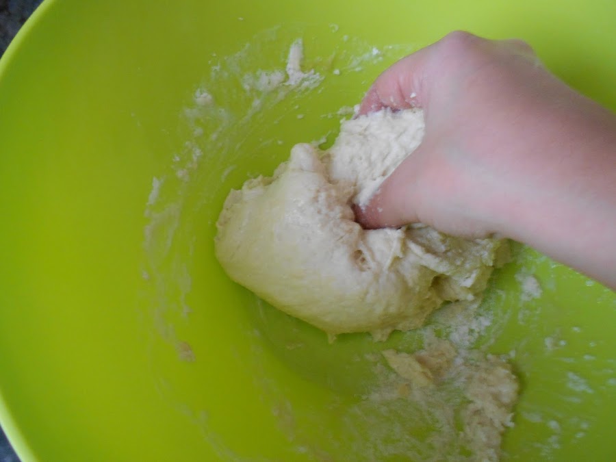 Amasamos bien hasta que quede una masa homogena y elastica.
