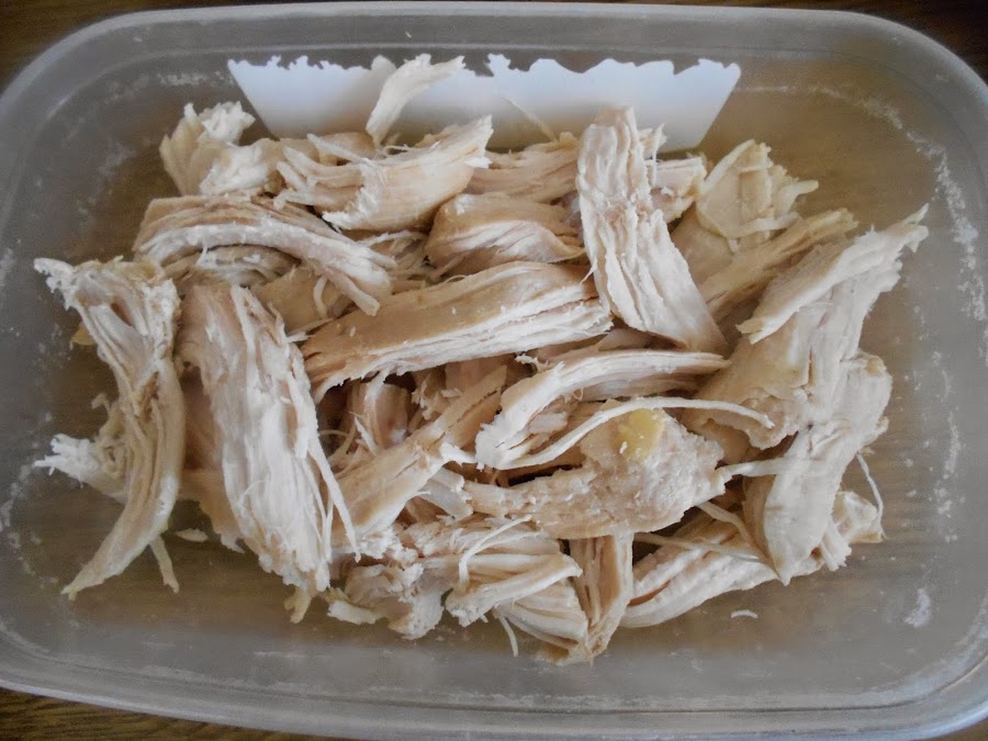 Cocemos la pechuga de pollo. Tambien podeis usar restos de pollo del cocido, o pollo asado que os haya sobrado.
