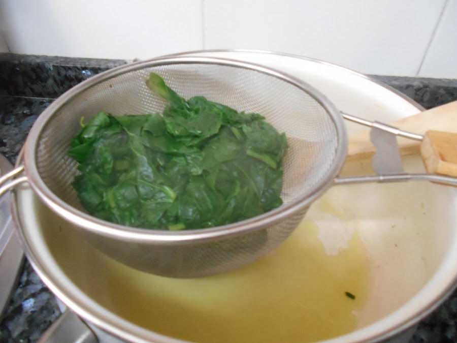 Cuando están cocidas las acelgas, las sacamos de la olla y las ponemos a escurrir .