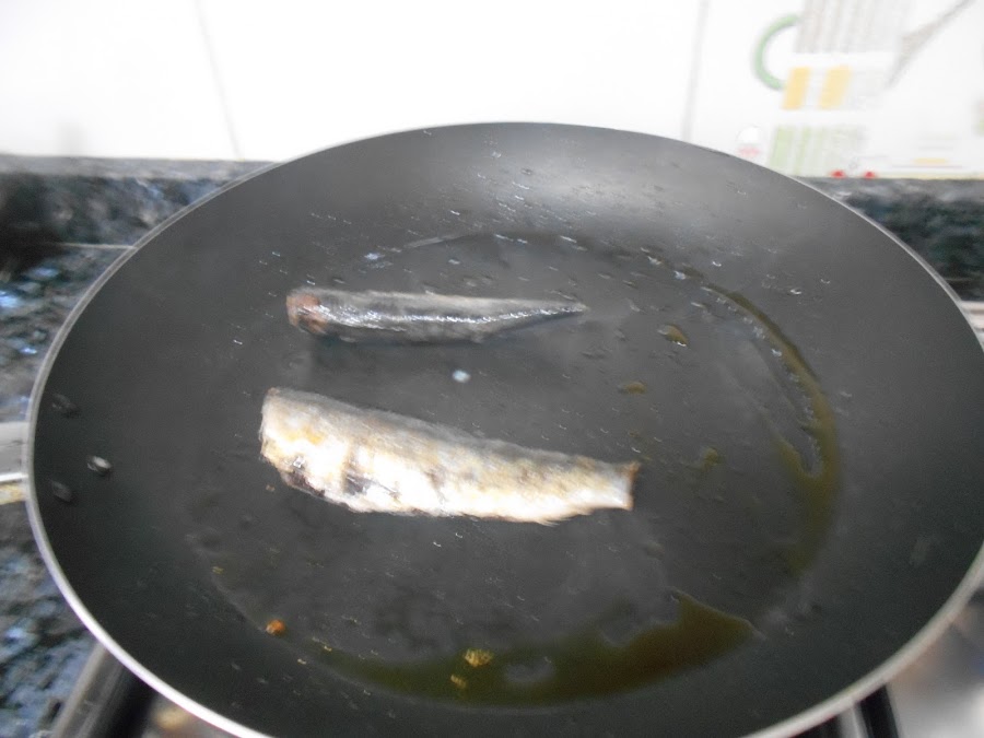 Desescamamos y limpiamos las sardinas de bota. Freimos las sardinas. Reservamos