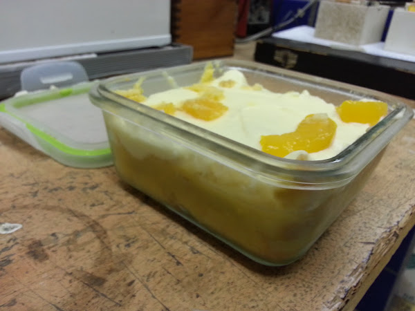 - 1 lata grande de frutas o duraznos en almíbar. Guarden el almíbar.