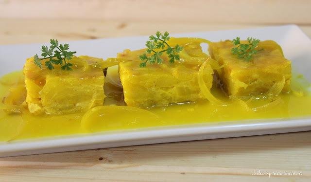 Con la siguiente receta vamos a aprovechar esos restos de tortilla de patata que a veces nos sobran del día anterior. La ventaja de esta preparación es que con la salsa la tortilla recupera su jugosidad a la vez que estás creando un plato diferente y muy apetecible. Nos lo enseña Julia, en su blog Julia y sus recetas, donde encontraréis muy buenas recetas y estupendos consejos para elaborarlas.