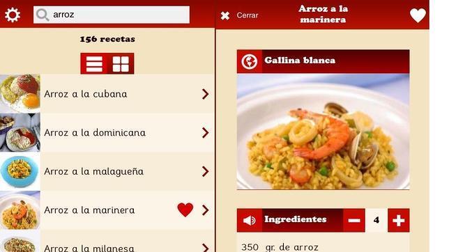Con esta aplicación de cocina no te faltarán ideas a la hora de entrar en la cocina. Puedes buscar recetas según su nombre, sus ingredientes o por grupos (arroces, ensaladas, verduras, etcétera). Además, la aplicación puede leer por ti los ingredientes y el modo de preparación de la receta. Vamos, que ni mirar la pantalla te hará falta. Otro detalle importante es que te calcula la cantidad de ingredientes según para cuantas personas cocines. Y como la anterior, puedes añadir a favoritos las recetas que más te gusten.