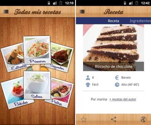 Esta aplicación nace a partir de la mayor red social de habla hispana dedicada a la cocina y a la gastronomía: Mis Recetas. Descargándolas tendrás más de 47.000 al alcance de tu mano. Elige la receta que quieras cocinar, según tipo, ingredientes, país, dificultad, coste, etcétera y selecciona después empezar a cocinar. Te permite añadir los ingredientes que necesites a una lista, de modo que puedas consultarla rápidamente cuando estés haciendo la compra. Puede presumir también de una bonita interfaz.