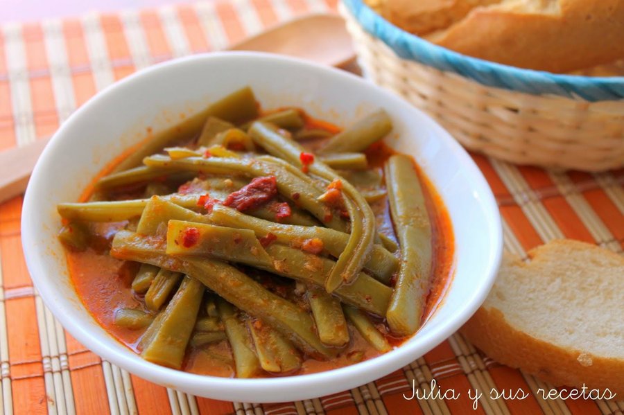 Una receta, esta de Julia que funciona bien con judía plana, como con judía redonda. Necesitarás vinagre, ajo, pimiento rojo seco, pan y las judías que más te gusten. No me diréis que no merecen la pena. Pues os cuento, que tras cocer las judias, le ponemos un majadito con el pan tostado y el pimiento seco y las dejamos cocinar, para luego darle un toquecito de vinagre ¡delicioso!