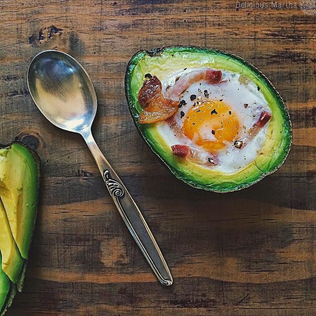 Precaliente el horno a 220º. Corta el aguacate por la mitad, retire la semilla y retire un poco de la pulpa del aguacate para que el huevo quepa entero en la cavidad. Echar un huevo en cada uno de los huecos del aguacate, agregar tiras de bacon, añada sal y pimienta y llévelo al horno por 10 minutos. ¡Sirva inmediatamente!