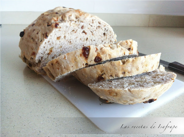 Las recetas de Isafrape nos ofrece un pan enriquecido, con pasas, nueces y pipas, un pan semi dulce ,delicioso y que aguanta tierno varios días. Vamos a visitar su página para tener claro como se elabora.