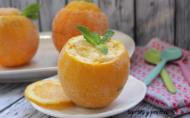 ¿A quien no le puede apetecer una de estas naranjas después de comer? Pues prepararlas solo os harán falta cuatro ingredientes y menos de 15 minutos. Luego solo queda congelar ¡Y las tenéis listas para cundo os apetezca!