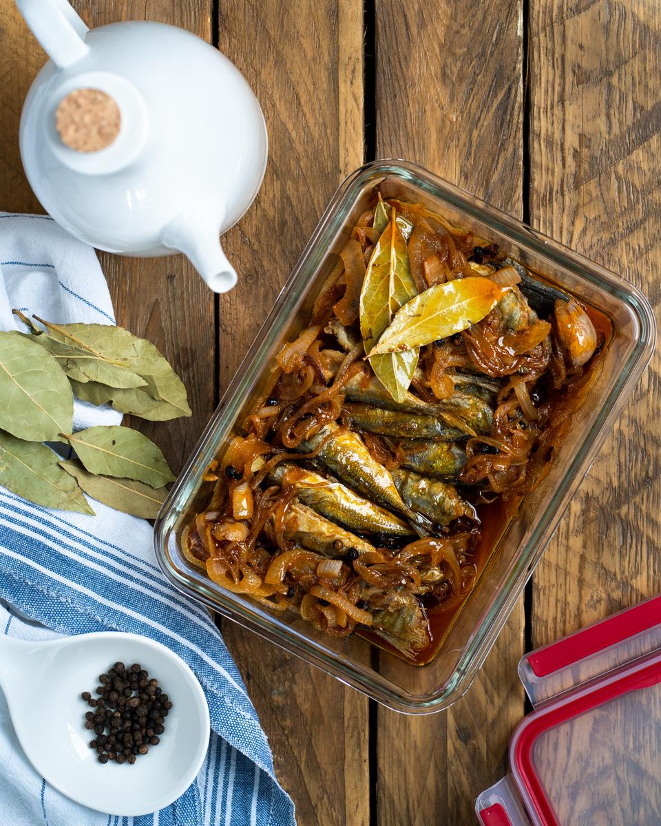 Añadimos el escabeche sobre el pescado y conservamos en el hermético de cristal. Mejor si macera 2 días