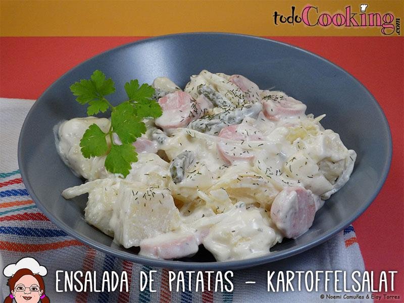 La Kartoffelsalat o ensalada de patatas, es un plato típico en la cocina austriaca y alemana. La versión que te enseño desde mi blog TodoCooking, lleva yogur, mayonesa, patatas, salchichas ahumadas, cebolla, mostaza y algunas especias más.